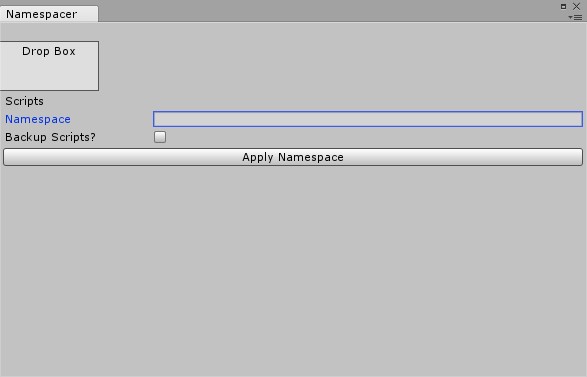 With the Simple Namespacer, you can simply drag, and drop scripts into a dropbox, type out a namespace, and hit a button! That’s all there is too it.
